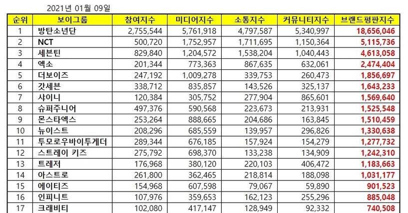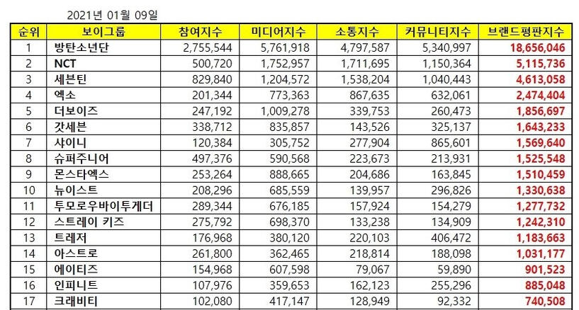It´s important, because if the artist is in the first place, the big brands will hire them for advertising and gains good popularity in Korea , hey measure it according to indices that are participation, communication, community and media