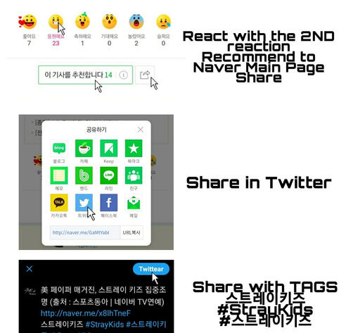 Para aumentarlo, haz clicks en los artículos, reacciona con el segundo emoji, recomienda a la página principal de NAVER y comparte con los tags